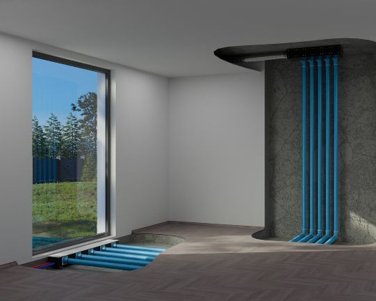 Через воздухораспределительную систему чистый нагретый/охлажденный до нужной температуры воздух распределяется по комнатам. Система позволяет точно настраивать температуру и влажность воздуха для каждого отдельного помещения в зависимости от заданных параметров.